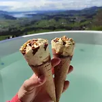 Ferienhaus Bergtraeumli Keine Zufahrt Gommiswald oferuje gościom relaksujące doświadczenie z jacuzzi i sauną.